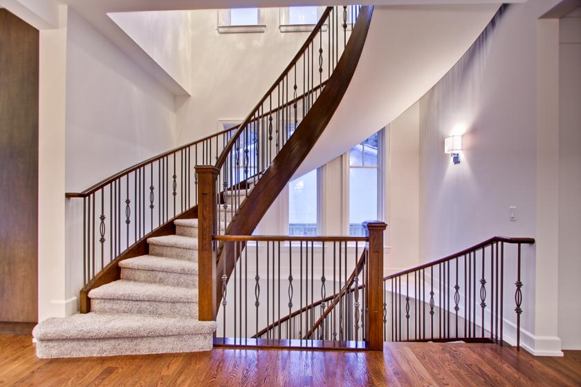 · Lavish spiral staircase up to the master suite with a fireplace and walk through 6-piece ensuite leading to the custom dressing room and upper laundry with separate entrance